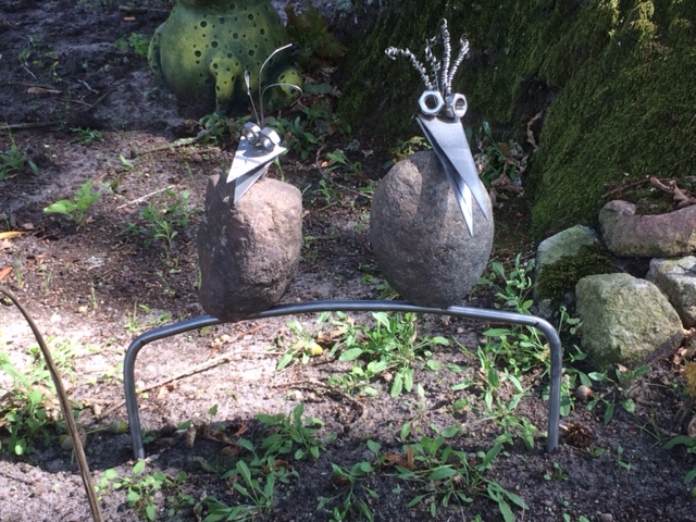 Im Garten aufgestellt halten sie nicht nur unerwünschte Vögel fern. Hier haben wir in einem Kundenauftrag ein paar ganz ausgefallene Exemplare erstellt, die mit feinster Schweißarbeit zu einem künstlerischen Bildniss zusammengeführt wurden.